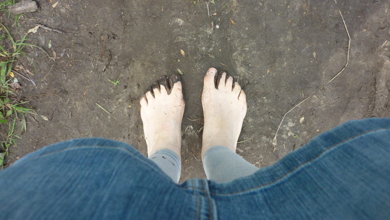 Tussen de bedrijven door vierde mijn dochter alvast haar verjaardagsfeestje, samen met een vriendinnetje die al langer terug jarig geweest is. Dat werd een bezoekje aan het Blôde Fuottenpaad (Het Blote Voetenpad, voor de niet-Gronings-sprekenden onder ons...). Ik ben 's avonds met een oude tandenborstel in de weer geweest om die zwarte smurrie er weer af te krijgen, maar de kinderen hebben enorm genoten!