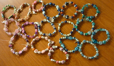 Een zak met restjes mooi fijn garen. De dame van de stand vroeg er maar 1 euro voor. Voor alles?! Vroeg ik. Ja hoor, zei ze, dat zijn allemaal restjes, daar doe ik toch niets mee. Ze keek mij aan met een blik van: Jij wel dan?! Ja hoor ik wel, voor 1 euro neem ik ze graag mee! :-) Wat zal ik eerst maken, zo'n mooie ketting, of bloem-oorbellen, of ... (wordt vervolgd :-) )