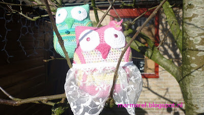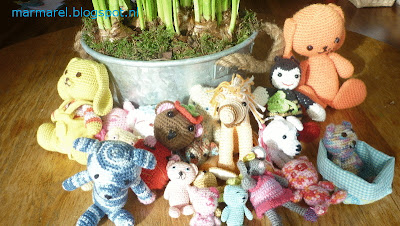 Afgelopen week was ik naar iets op zoek. Ik doorzocht allerlei bakjes en mandjes en vond niet wat ik zocht. Wat ik wel tegenkwam, waren deze buttons. Ooit heb ik ze gehaakt, misschien wel 2 jaar geleden. Ik was van plan de patroontjes uit te schrijven. Dat heb ik niet gedaan, ik zou ze overnieuw moeten maken om te kijken hoe ik ze ook alweer gemaakt heb. Ze liggen nu op mijn bureau, ik zal eens bedenken wat ik ermee ga doen!